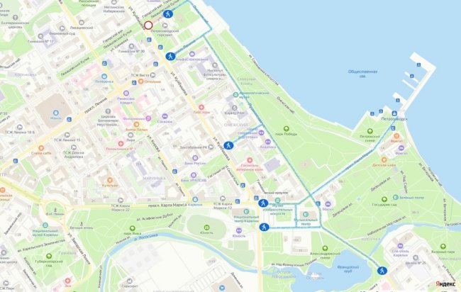 Запретят проезд по улицам Пушкинской и Фаддевской, а также не будет возможности проехать от улицы Куйбышева в сторону Онежской набережной по проспектам Ленина и Карла Маркса. На улицах Еремеева, Германа Титова и Луначарского тоже организуют пешеходные зоны. Действующий запрет проезда сохранится на площади Кирова.