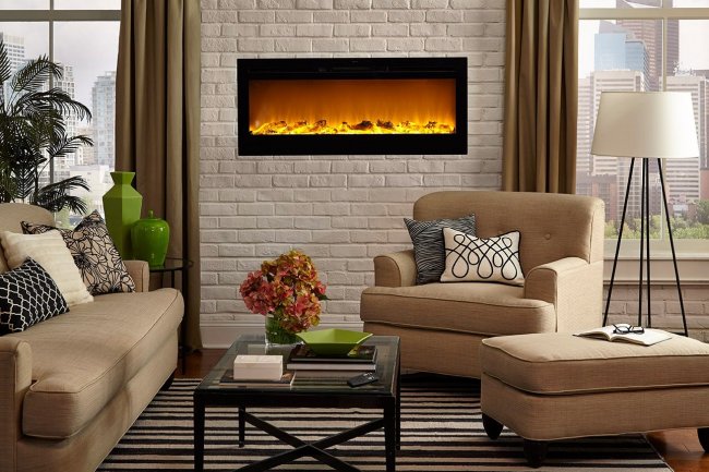 - Модели носят скорее декоративный характер, так как обогреть помещение с помощью электрокамина довольно-таки сложно.