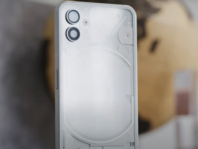 Смартфон наделён прозрачной задней панелью, через которую просматривается крупная катушка системы беспроводной зарядки аккумулятора. Тыльную часть аппарата охватывает подсветка на основе более чем 900 небольших светодиодов (LED): они отвечают за работу так называемого интерфейса Glyph Interface с набором необычных возможностей.