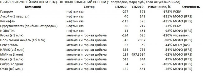 Таким образом, видно, что в сырьевом и экспортном секторах российской экономики большинство крупных предприятий переживают плохие времена.