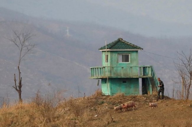Солдат пасет свиней на границе с Китаем, 2017
