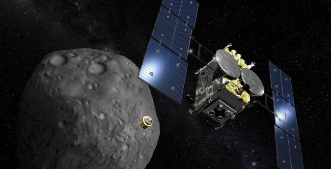 Хаябуса-2 у астероида Рюгу. Фото JAXA
