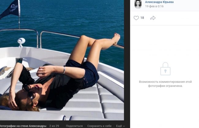 The Insider нашел аккаунт Александры Юрьевой в «ВКонтакте». В основном она публикует снимки за рулем и с отдыха.