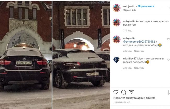 Пользователь Instagram @autojustic, который публикует снимки красивых автономеров, в 2016 году загрузил снимок машины с номером м525хе197, который, по данным The Insider, принадлежит Юрьевой. Рядом — BMW с госномером х525ме777.