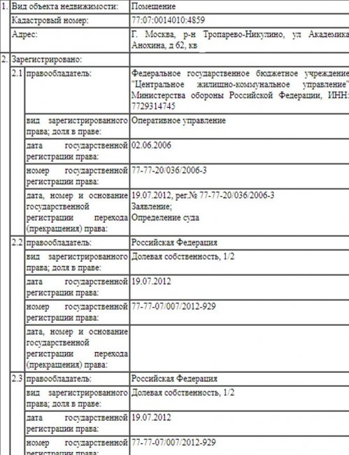 Плюс ко всему, у семьи Юрьевых, как установил The Insider, есть как минимум еще одна квартира на улице Академика Анохина. Ее площадь — 79,9 м², цена — около 15 млн рублей. В выписке из Росреестра на объект указана долевая собственность. Каждая из двух долей записана на «Российскую Федерацию».