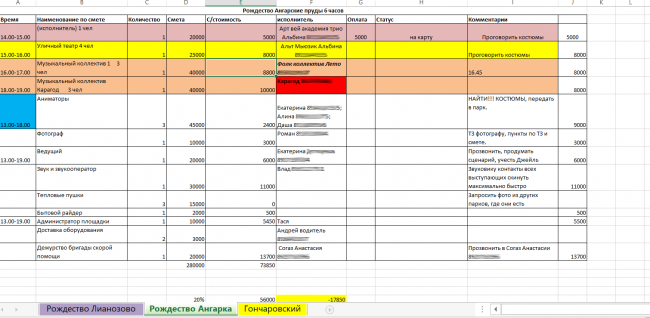 В распоряжении The Insider оказались сметы, которые указывают на масштаб воровства при исполнении подряда мэрии Москвы на новогодние мероприятия (а столичное правительство выделило на них в этот раз ни много ни мало 1 млрд рублей). Судя по внутренним документам компании «Вип Бал» (она организовывала мероприятия в трех московских парках — Лианозово, Ангарке и Гончаровском), до исполнителей из выделенных 1,26 млн рублей дошло только 304 тысячи.