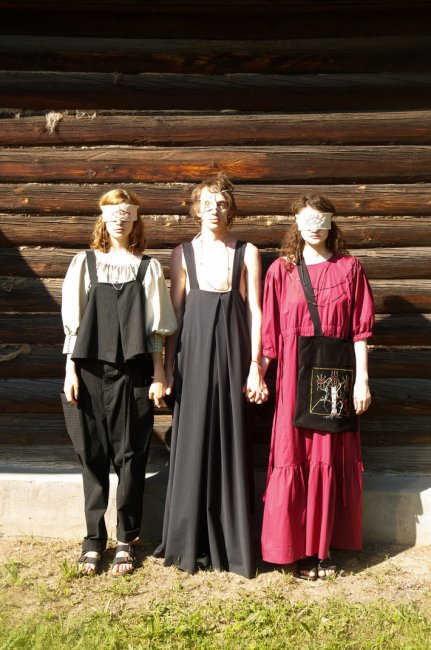 Так, на основе мужских рубах созданы плащи мужские и женские, платья с имитацией фартука, есть круглый сарафан-москаль в современном прочтении, шелковая женская рубашка с ручной сборкой «куколками», костюм из косоворотки и нижегородских мужских штанов. Главное, что эти вещи интересны людям, кто-то сразу узнает в них намек на «русское-народное», а кто-то удивляется насколько интересен и современен наш традиционный крой!
