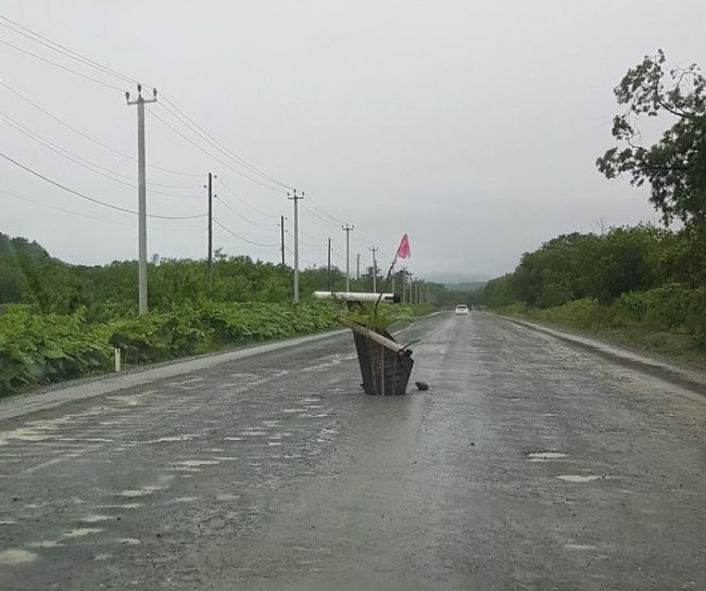 Жители Южно-Сахалинска сообщили о двухметровом провале, который образовался на грунтовой дороге за селом Елочки. В связи с этим горожане стали с помощью мессенджеров предупреждать водителей об опасности. Видео с огромной ямой появилось в Telegram-канале «Дачные новости».