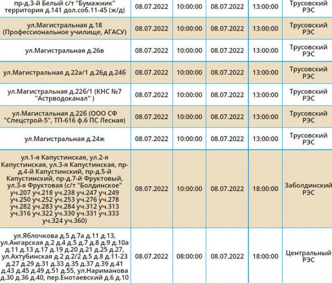 В трех районах Астрахани 8 июля на несколько часов отключат свет