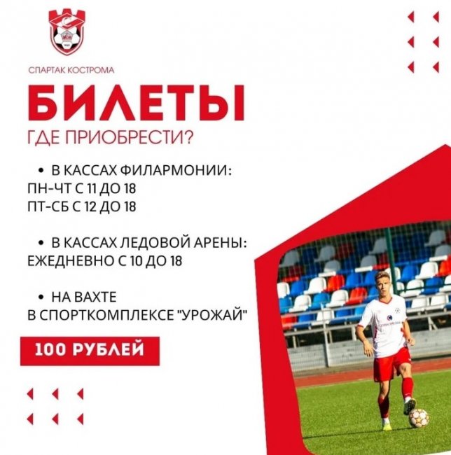 Начало игры — в 18:00, билеты на матч можно купить в кассах филармонии. Те, кому неохота ехать на стадион в Караваево, могут посмотреть игру (и поболеть за любимую команду) на Сусанинской площади, где в пятницу 22 июля будет установлен большой экран, на который будет транслироваться игра.