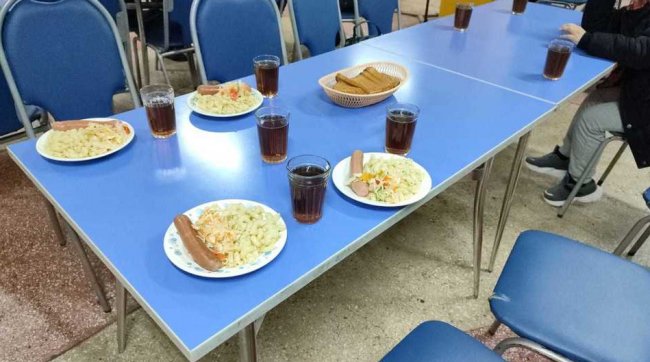 Все было готово к встрече людей, попавших в бедственное положение, в том числе и горячий ужин из макарон, сосисок, салата, бутерброда и горячего чая.