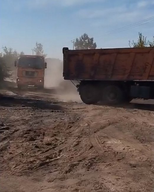Люди обращались в районную управу, чтобы для самосвалов использовалась альтернативная дорога через поле, в объезд жилого сектора, но грунтовку в жилом секторе продолжают добивать.