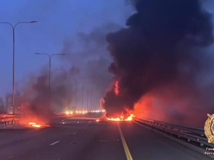 Грузовик «ДАФ» с полуприцепом проезжал по участку трассы Аксайского района в сторону Ростова. На 1030 километре (недалеко от аэропорта «Платов») из кузова другой фуры впереди внезапно вылетел металлический предмет и попал в «ДАФ». Грузовик развернуло к барьерному ограждению, водитель не смог избежать столкновения и на скорости врезался в препятствие. Сам он, к счастью, остался цел и успел покинуть авто. А вот сам грузовик вспыхнул.