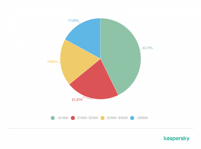 Эксперты «Лаборатории Касперского» проанализировали в даркнете почти 200 объявлений о продаже доступов. Выяснилось, что в среднем стоимость доступа варьируется от 2000 до 4000 долларов США, и лоты часто продаются в день публикации.