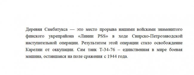 В Карелии началась реставрация уникального памятника времен Великой Отечественной войны: танк Т-34-76 майора Колченка отреставрируют в деревне Самбатукса. Об этом рассказал зампредседателя фонда «Эстафета поколений» Илья Герасев.