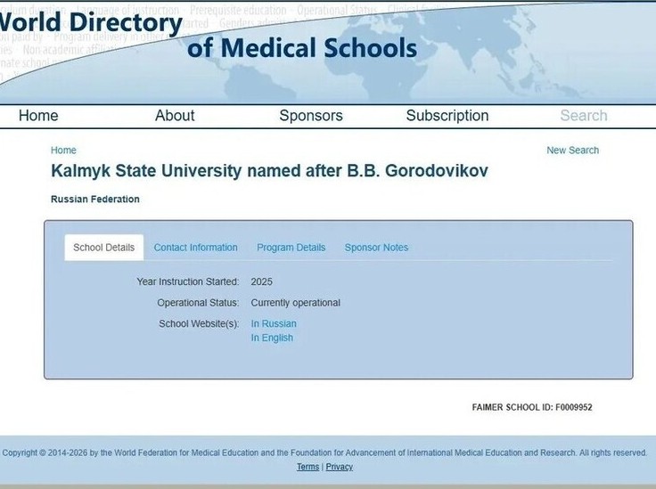 Калмыцкий государственный университет им. Б. Городовикова официально включён во всемирный справочник медицинских университетов (World Directory of Medical Schools, WDMS). Справочник курируют Всемирная организация здравоохранения (ВОЗ) и Всемирная федерация медицинского образования (WFME).